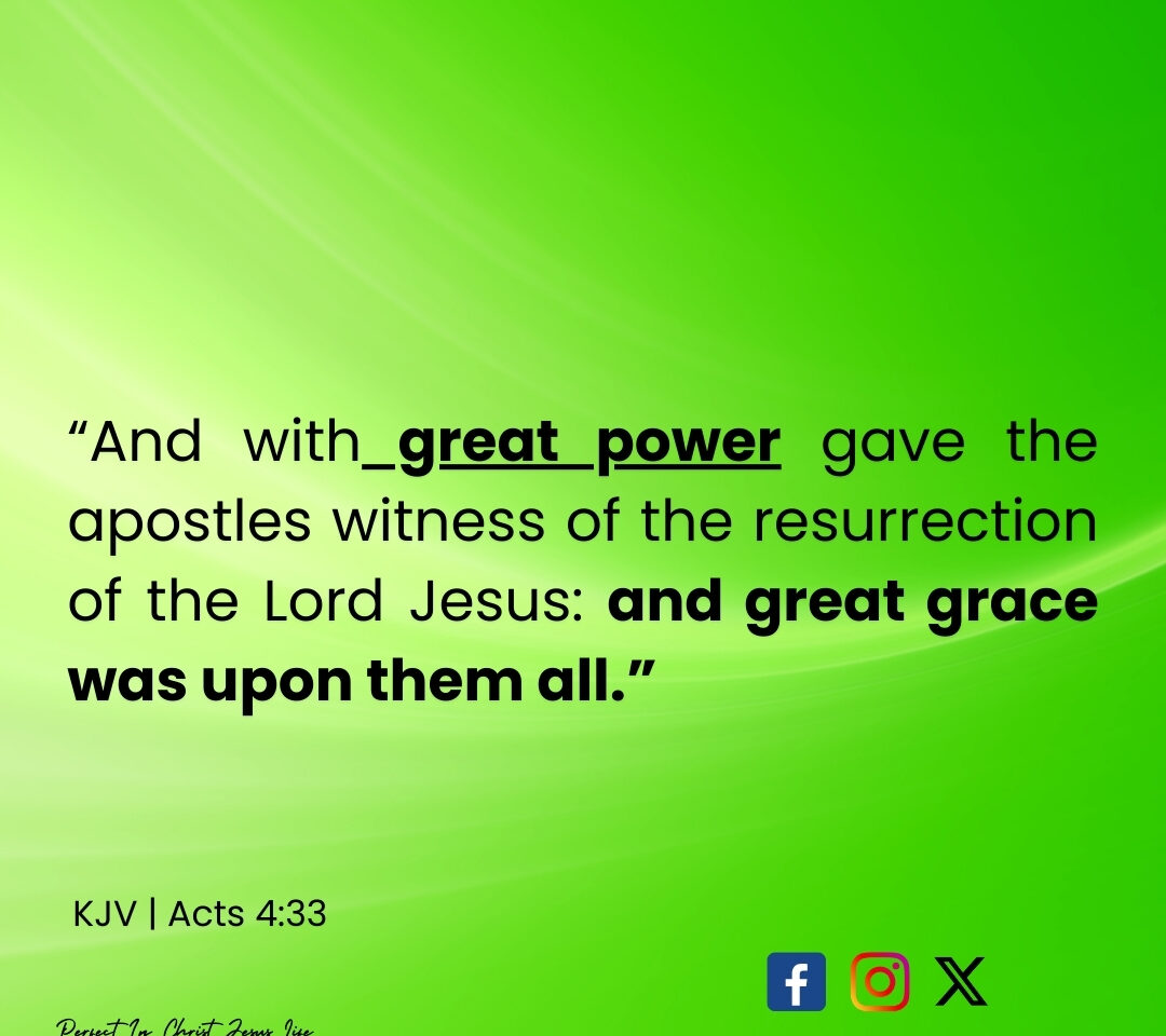 “With great power gave the apostles witness of the resurrection of the Lord Jesus: and great grace was upon them all.” (Acts 4:33)